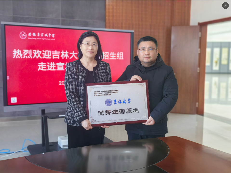 3月19日,宣讲组走进宣城中学,校长陈健、高三年级负责人及教务处主任共同参与座谈。宣讲组介绍了学校的办学实力、科研平台及国际化资源,并举行“米兰平台优质生源基地”授牌仪式,充分肯定该校为吉大输送的优秀学子。